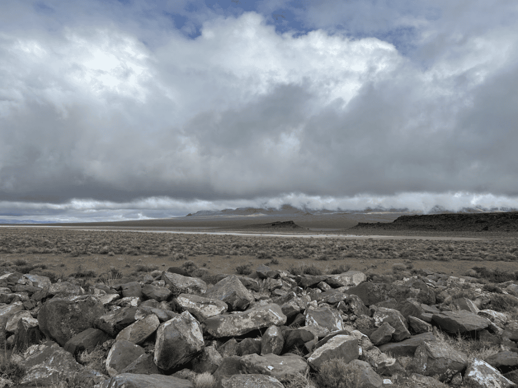 The experience was framed by my drives to and from Las Vegas, many hours of seeing through clouds, mists, and suddenly clear skies, the rhythm of basin and range, and mountains that spike up in unpredictable ridges and frame the places that have sustained the many Tribes who live there.